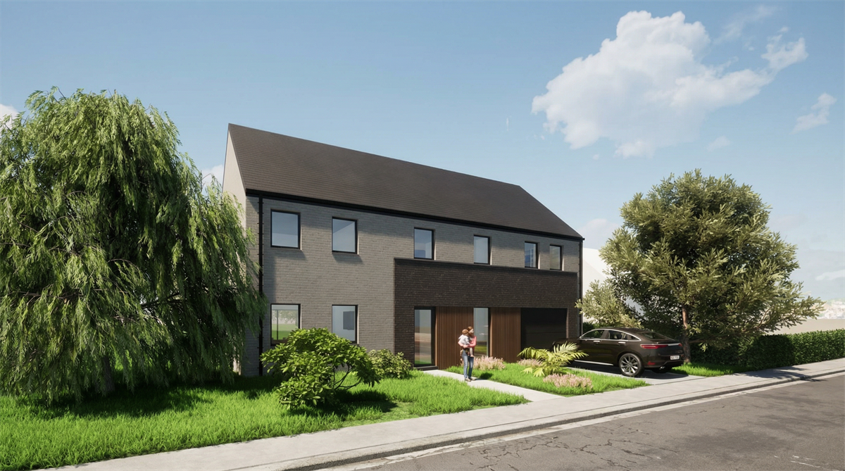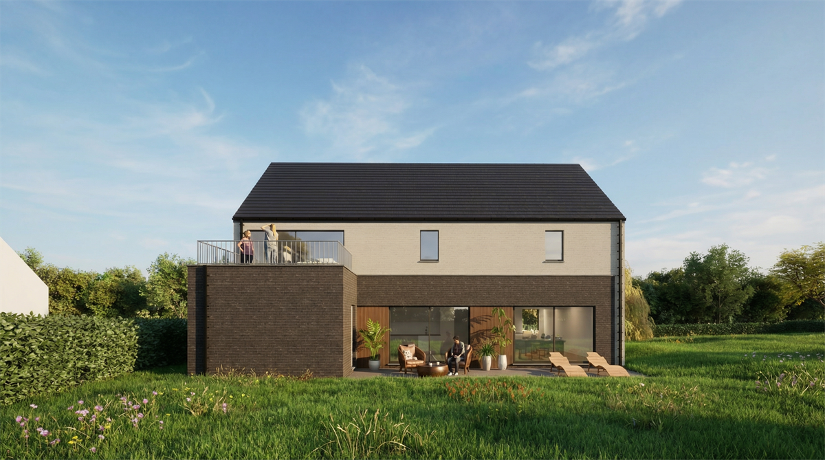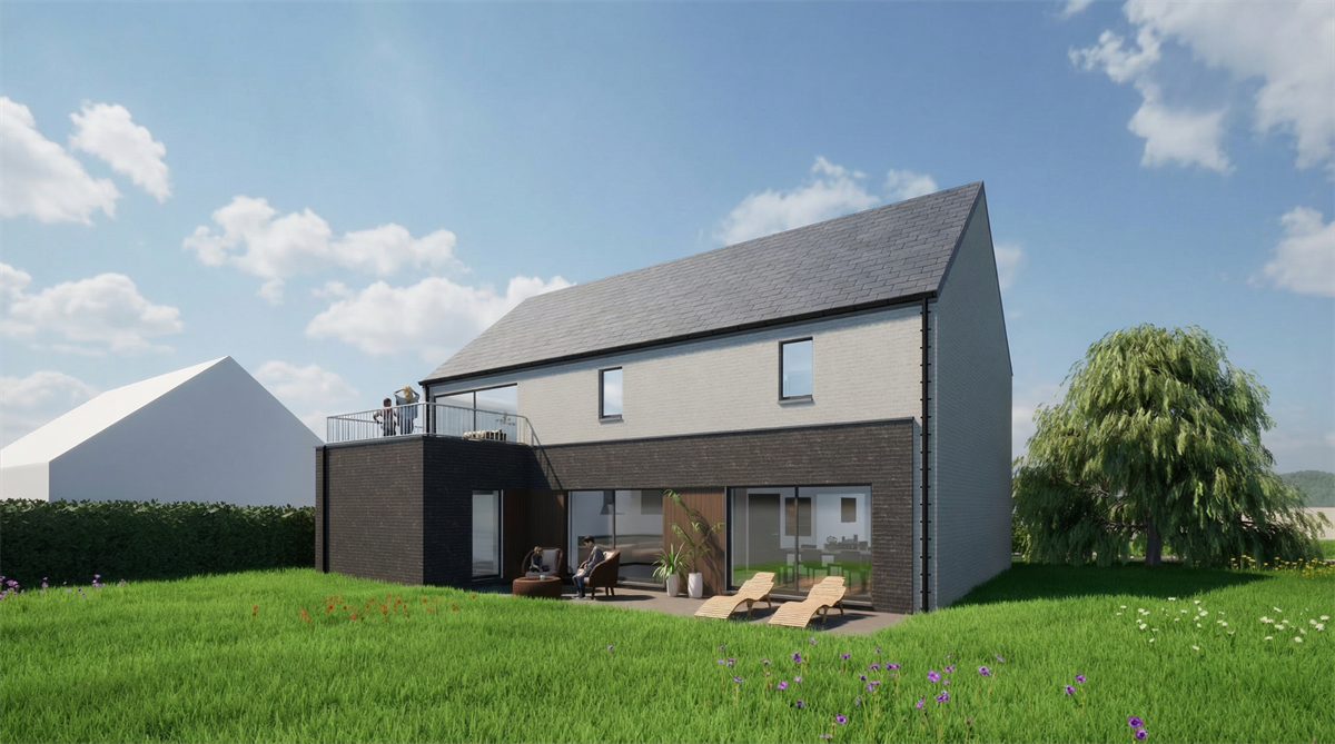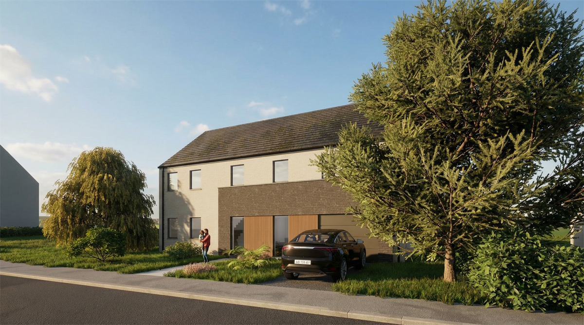 Cette habitation unifamiliale s’implante dans un tissu résidentiel villageois caractérisé par des volumes simples et une relation directe à la rue. Le projet ne cherche ni à reproduire la typologie du bâti environnant, ni la rupture formelle. Il s’appuie simplement sur une volumétrie lisible et familière pour travailler plus finement la spatialité intérieure et le rapport au site.