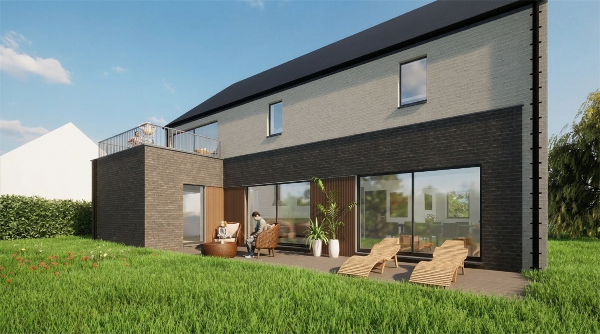 La volumétrie extérieure reste volontairement sobre. D'un côté nous avons une façade à rue relativement fermée et de l'autre, une façade arrière beaucoup plus ouverte. Ce contraste n’oppose pas deux architectures, mais exprime deux situations d’habiter : se protéger et s’ouvrir.