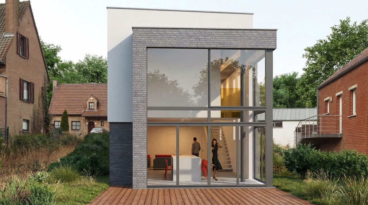 Située à Quaregnon, cette habitation unifamiliale prend place dans un environnement relativement rural, caractérisé par une succession de maisons traditionnelles. Les propriétaires souhaitaient une architecture contemporaine capable de se distinguer clairement de ce contexte tout en conservant une intégration cohérente dans le tissu existant.