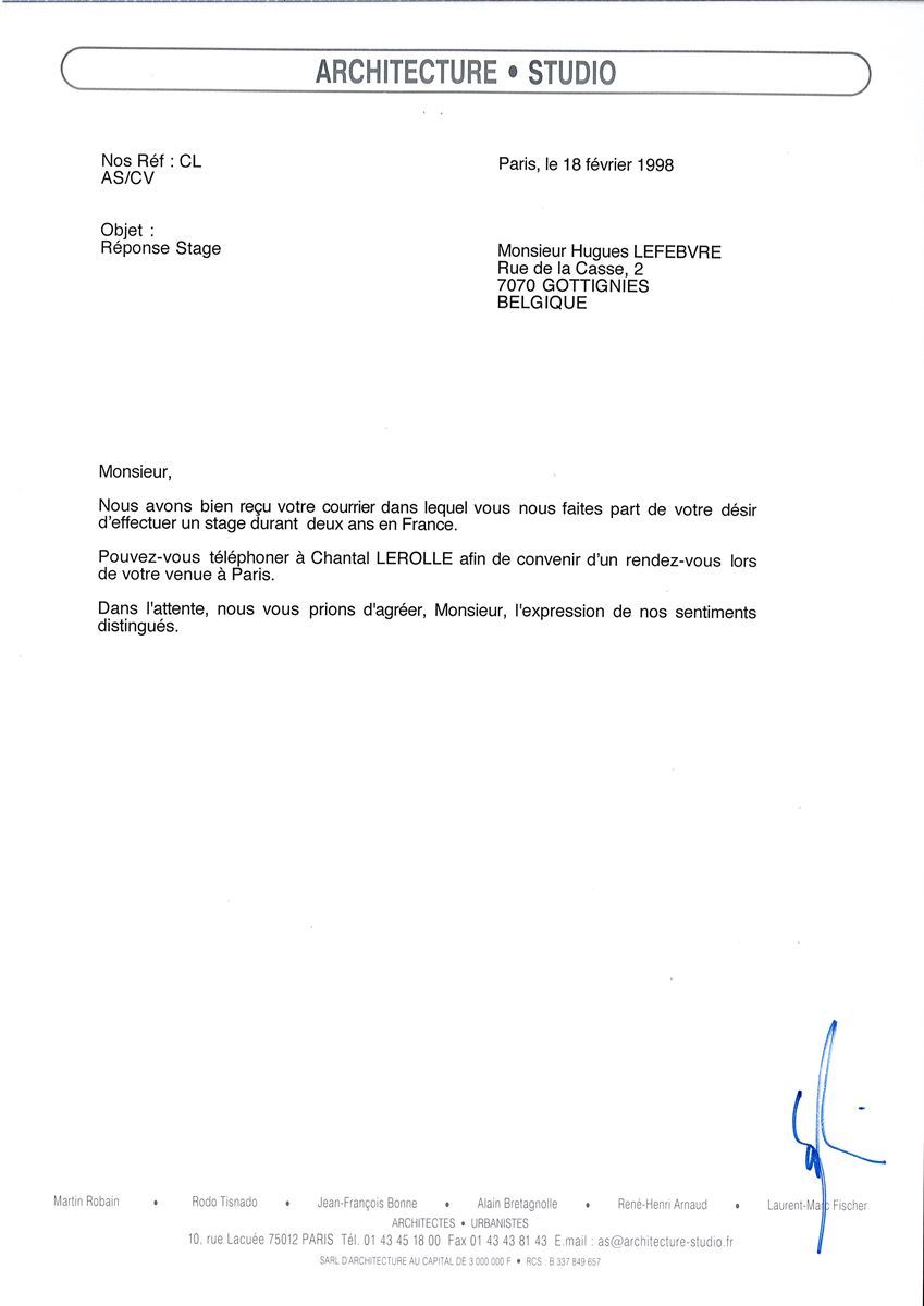 Après 3 ans de collaboration et ayant de plus en plus de demandes privées, Hugues Lefebvre repart sur Mons, sa ville de coeur, et collabore à temps partiel avec le bureau Gicart-Renaud. Il développe ses propres dossiers en parallèle.