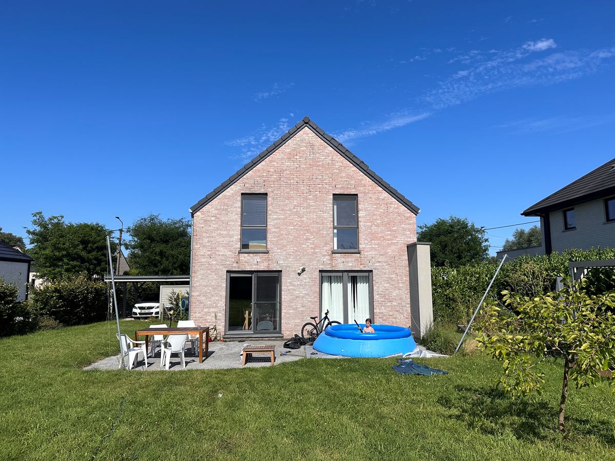 L’intervention consiste en une extension à l’arrière d’une habitation traditionnelle, dont le gabarit a été rigoureusement repris et prolongé. Ce choix volontaire évite toute rupture brutale et ancre le projet dans une continuité cohérente du volume initial. Là où le projet se distingue, c’est dans le traitement architectural : une matérialité plus actuelle, notamment à travers l’utilisation d’une brique collée, vient subtilement marquer l’intervention contemporaine.