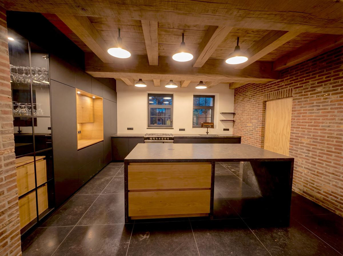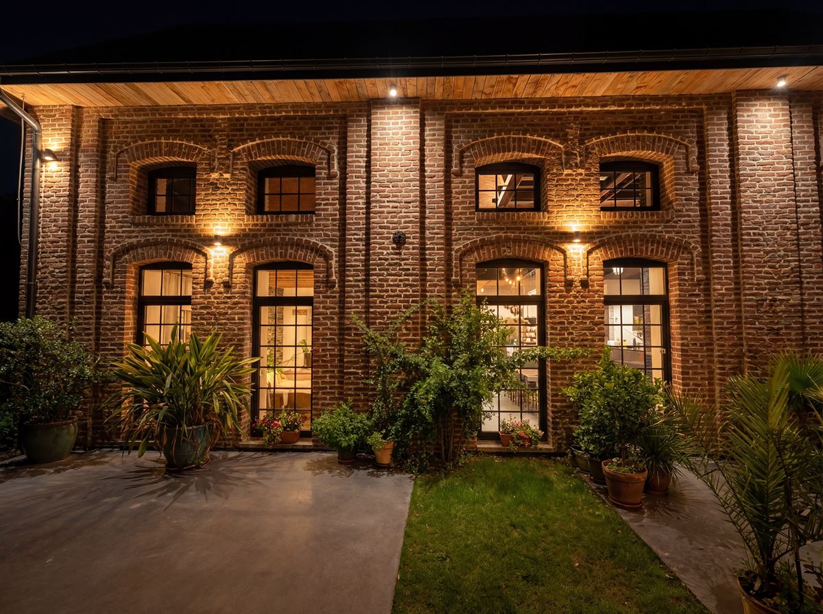 L’intervention repose d’abord sur une position claire : préserver l’identité extérieure du volume. Les maçonneries en briques ont été conservées et restaurées, tout comme le rythme et les proportions des baies existantes. Les percements n’ont pas été redessinés arbitrairement pour répondre à un programme domestique standard ; au contraire, c’est l’habitation qui s’est organisée autour de la structure héritée. Les dessins de briques, la matérialité et la lecture d’origine du bâtiment restent ainsi lisibles depuis l’espace public. L’enveloppe conserve son caractère industriel, évitant la transformation caricaturale en « fausse maison traditionnelle ».